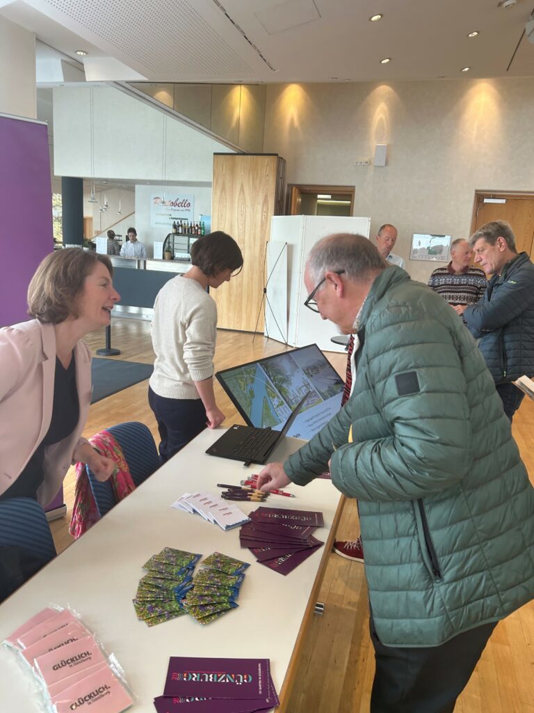 Bei der Bürgerversammlung der Stadt Günzburg im Forum am Hofgarten beteiligte sich auch das Team der Landesgartenschau 2029 mit einem Infostand.
