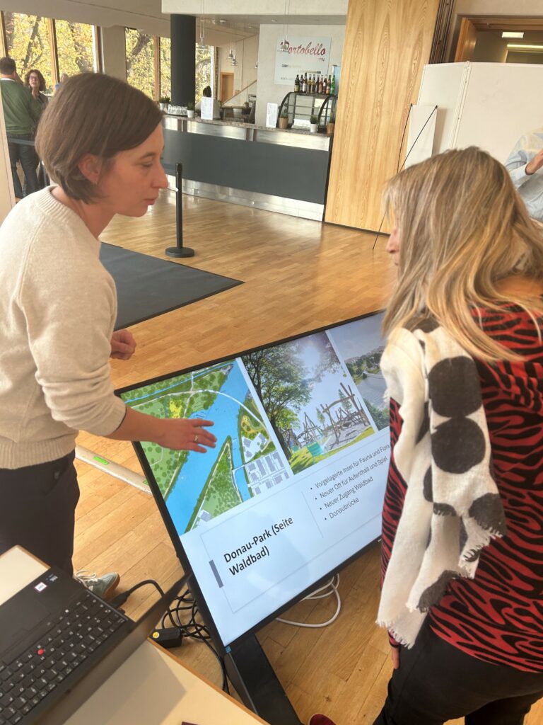 Marion Voß und Karin Scheuermann beantworteten zahlreiche Fragen rund um den Freundeskreis und die Ausstellungsflächen. Besonders groß war das Interesse am Donau-Park am Auweg, dem Herzstück und Hauptgelände der Landesgartenschau.